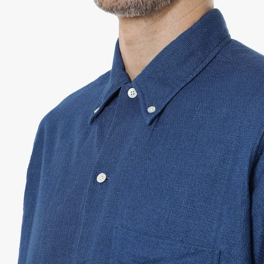 Beams Plus Open Button Down Indigo Panama Double Gauze Shirt