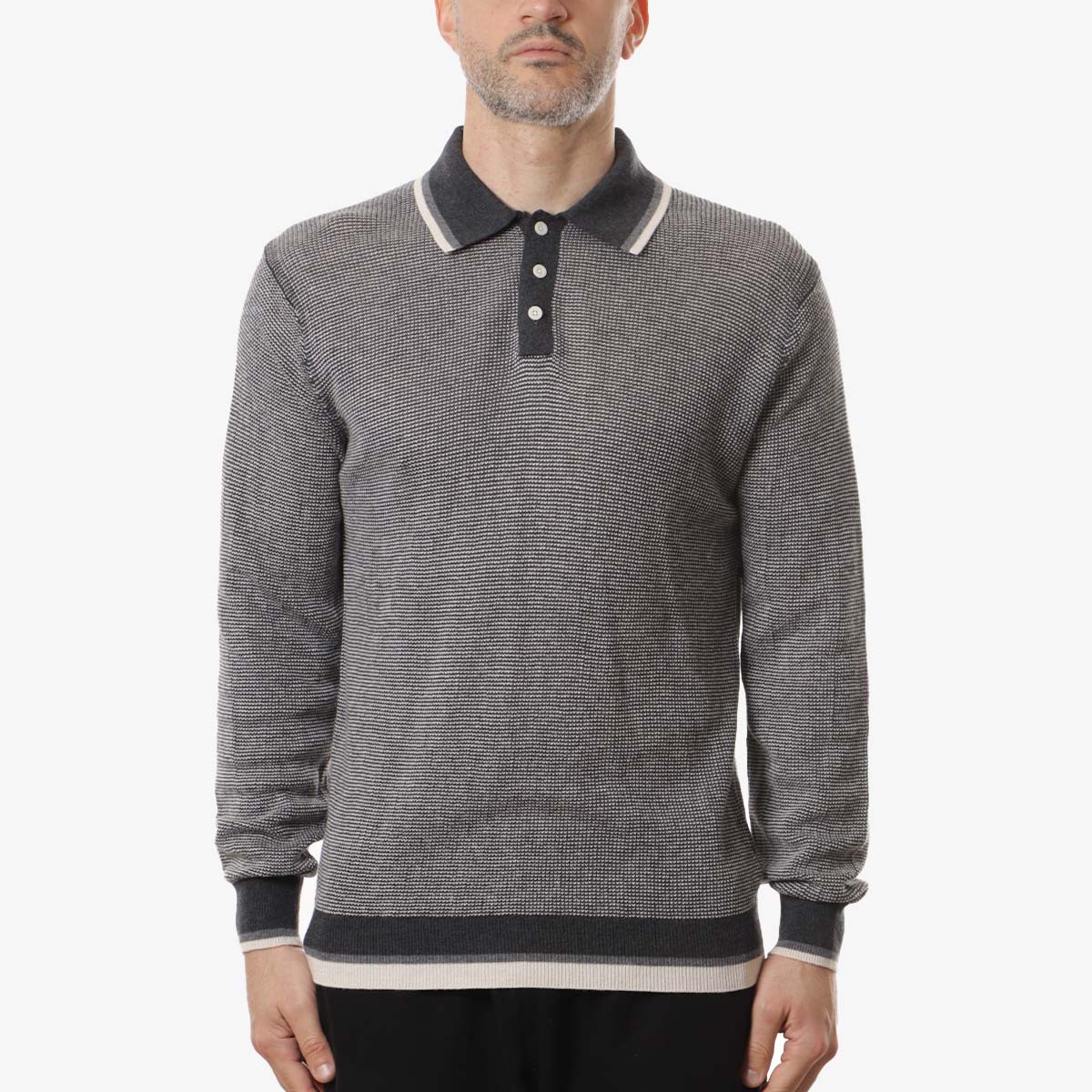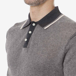 Beams Plus Collar Line Knit Polo Shirt Charcoal