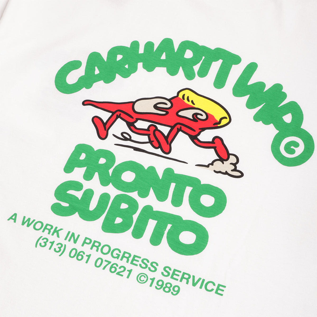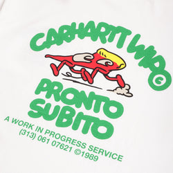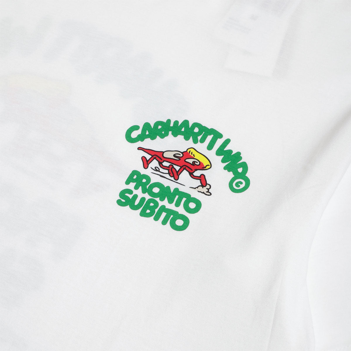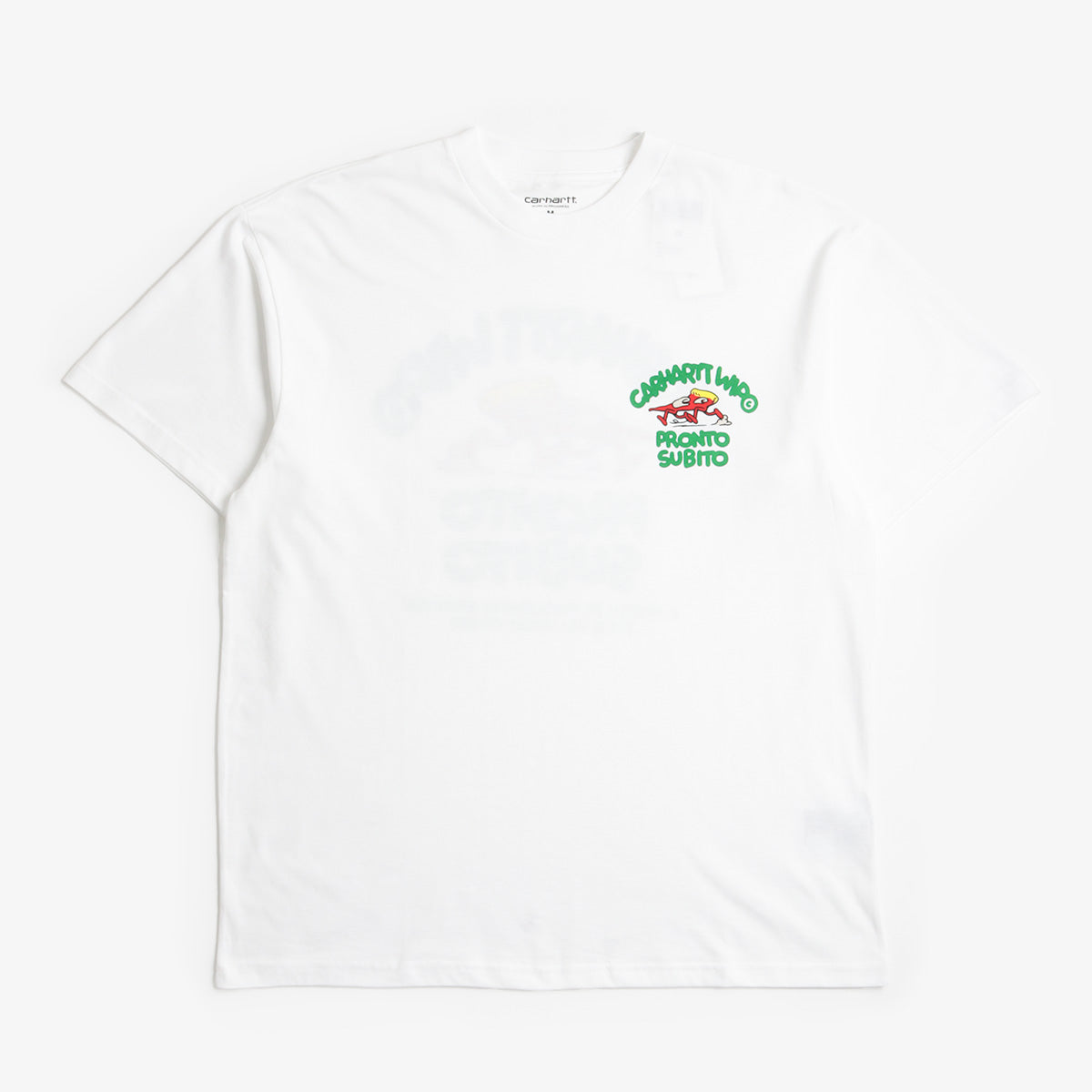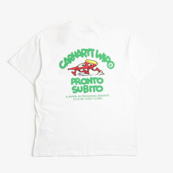 The Carhartt WIP Pronto T-Shirt in White is built for laid-back days and easy wear. Made from lightweight 100% organic cotton jersey, it delivers breathable comfort perfect for everyday use. The relaxed, loose fit provides plenty of room to move, while bold graphic prints on both the front and back add standout detail.