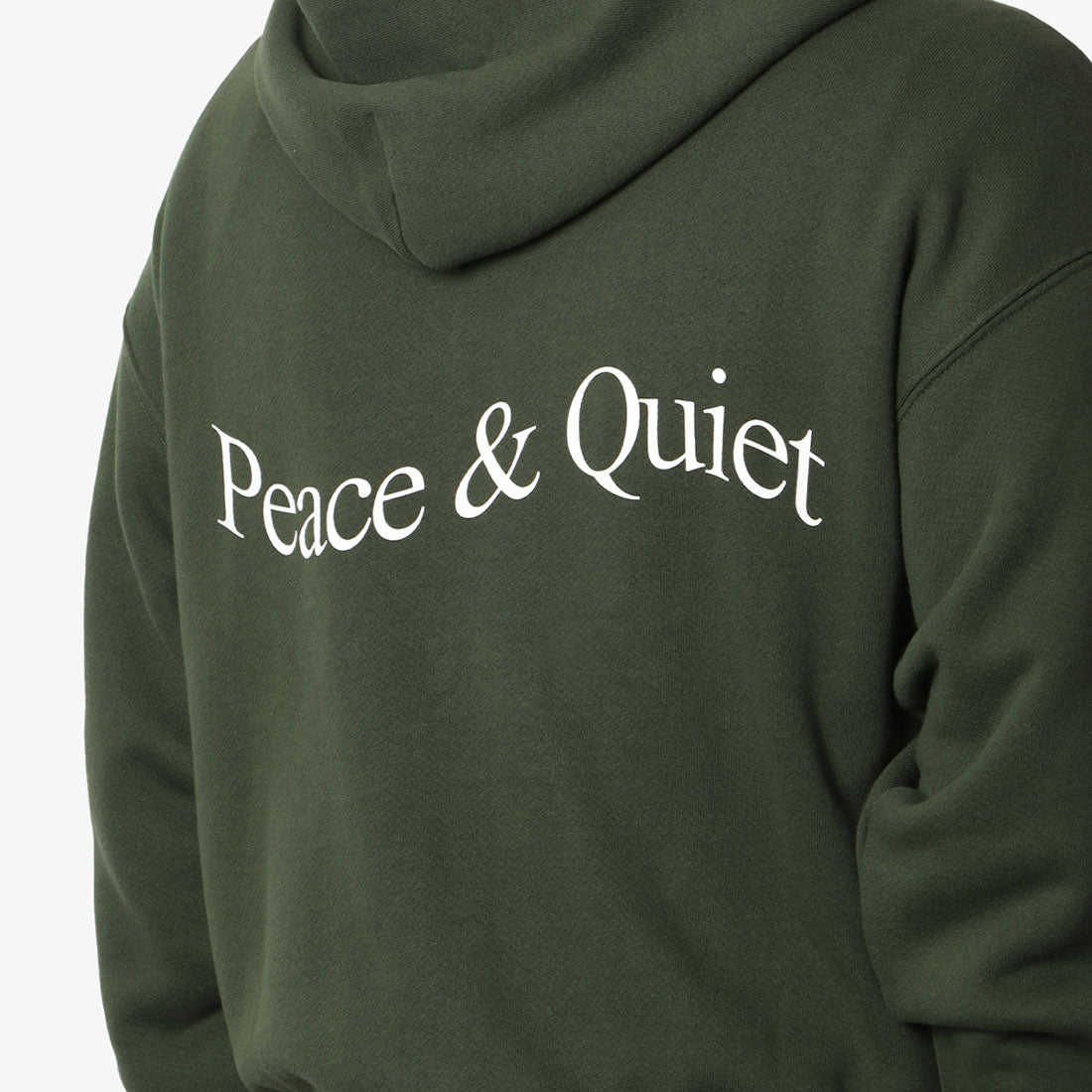 The Museum of Peace and Quiet Wordmark Zip Up Hoodie in Forest is an essential piece to elevate your everyday wardrobe. Made from cotton with a slightly boxy, regular fit, this premium hoodie features a full zip front, hood, and ribbed cuffs and hem. It's finished with the brand's signature wordmark print on the chest and back, promoting reflection and mindfulness.