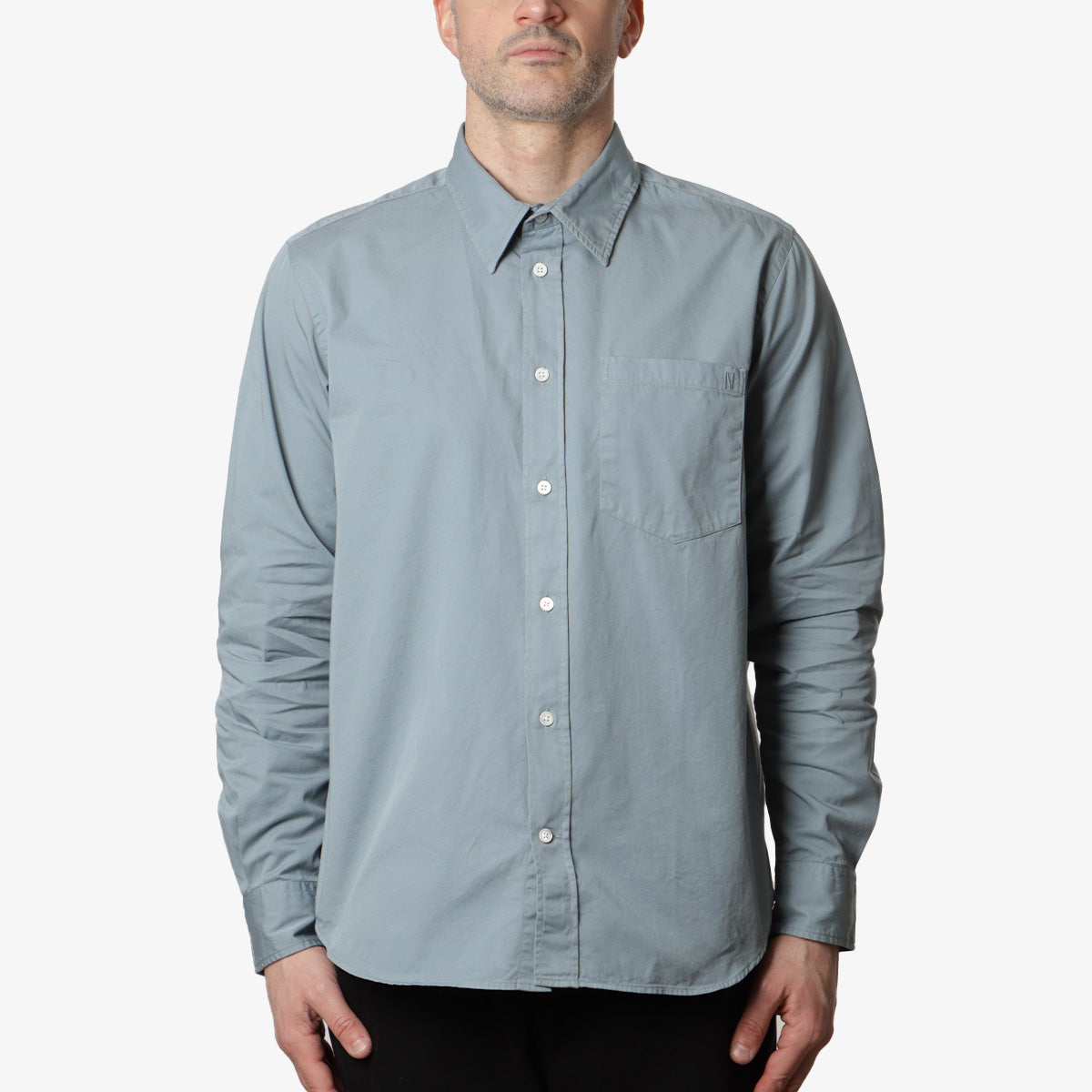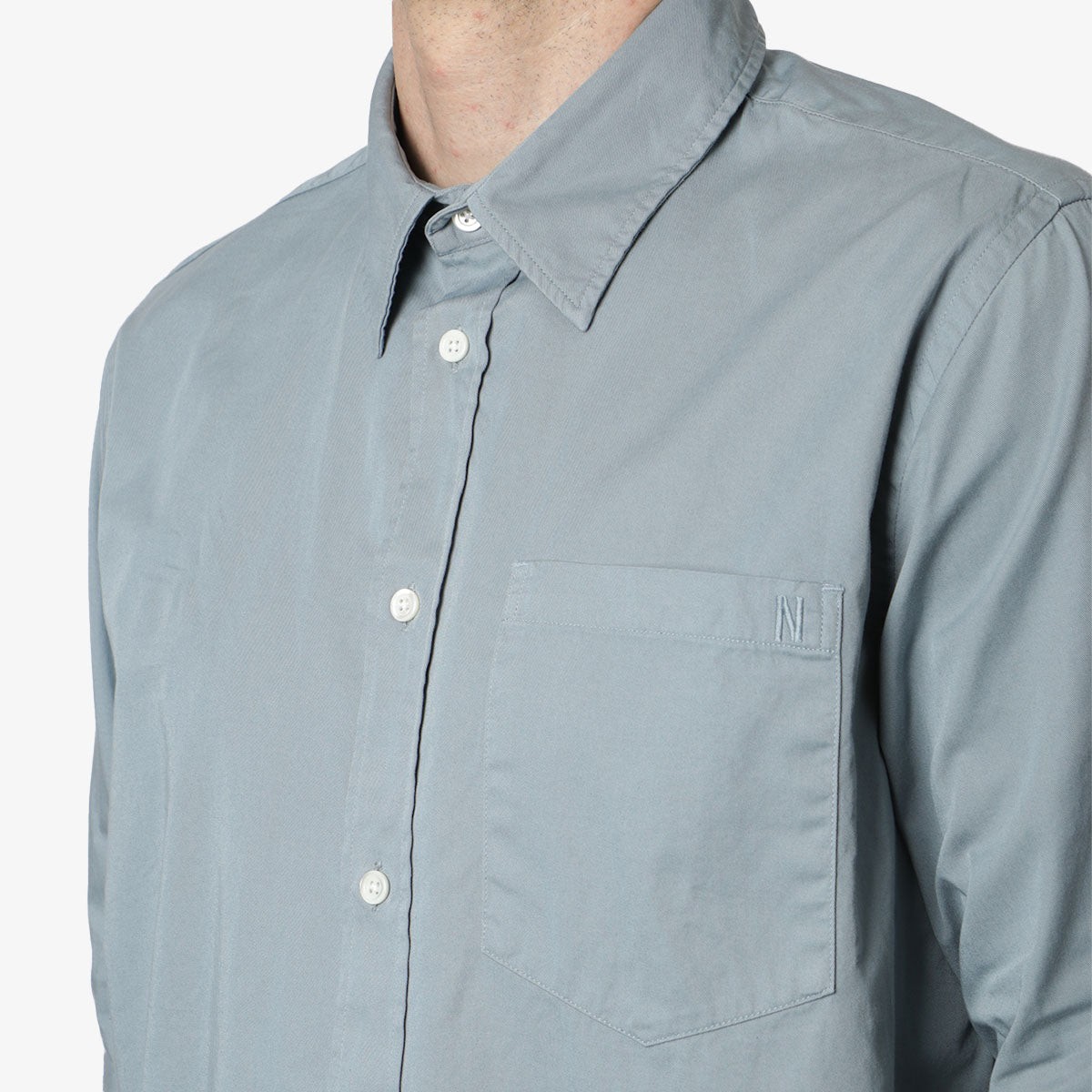 The Algot Twill Shirt in Greyish Blue from Norse Projects is a wardrobe essential, offering a timeless smart-casual style that pairs effortlessly with work pants, jeans, or shorts. Made from lightweight Italian cotton twill, this regular fit shirt is garment-dyed for a rich depth in colour.