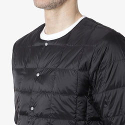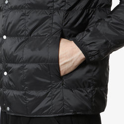 The Taion Crew Neck Button Down Jacket in Black is their signature piece, a warm easy to wear design that works as well under a coat as it does over a hoodie.