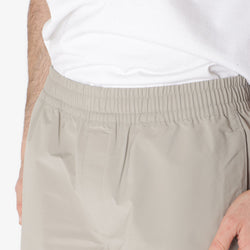 The elastic waistband with internal drawcord ensures a personalised fit. Front hand pockets and a zippered back pocket provide convenient storage, and the subtle embroidered logo on the left thigh completes the look.