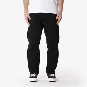 The tapered leg narrows gradually but stays relaxed through the thigh, providing more room than a slim fit. -