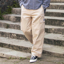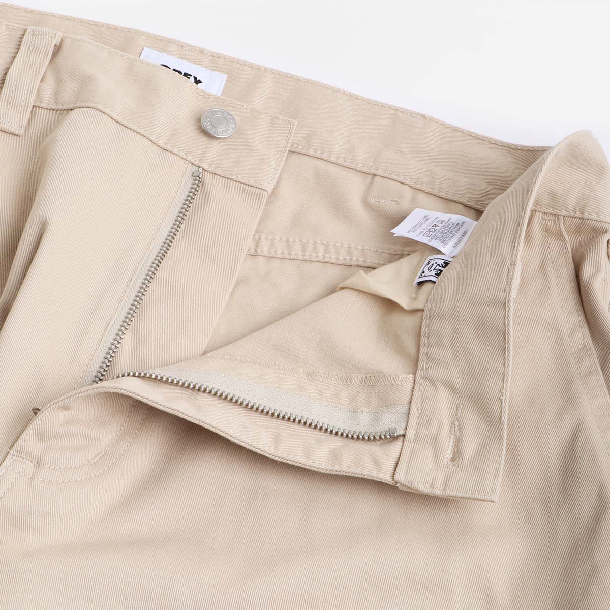 Doté d'une coupe décontractée et d'une braguette zippée avec bouton, ce pantalon offre un grand espace de rangement avec deux poches italiennes à l'avant, deux poches arrière et des poches cargo sur la cuisse. La poche gauche de la cuisse est ornée du logo tissé emblématique OBEY.