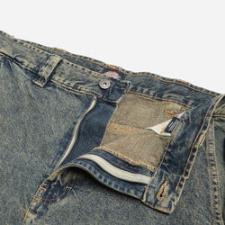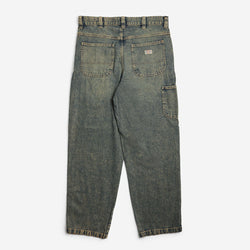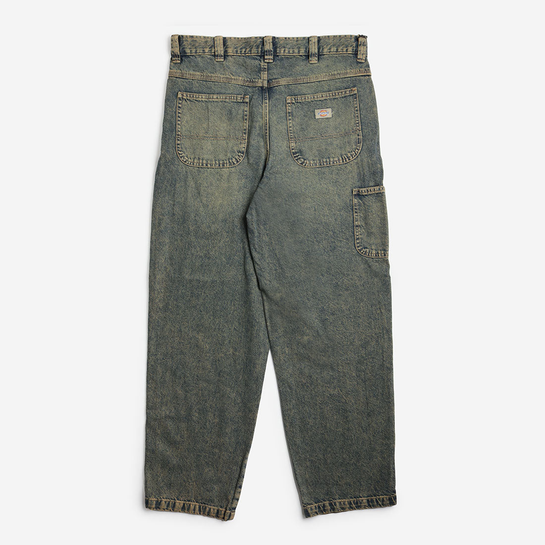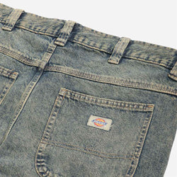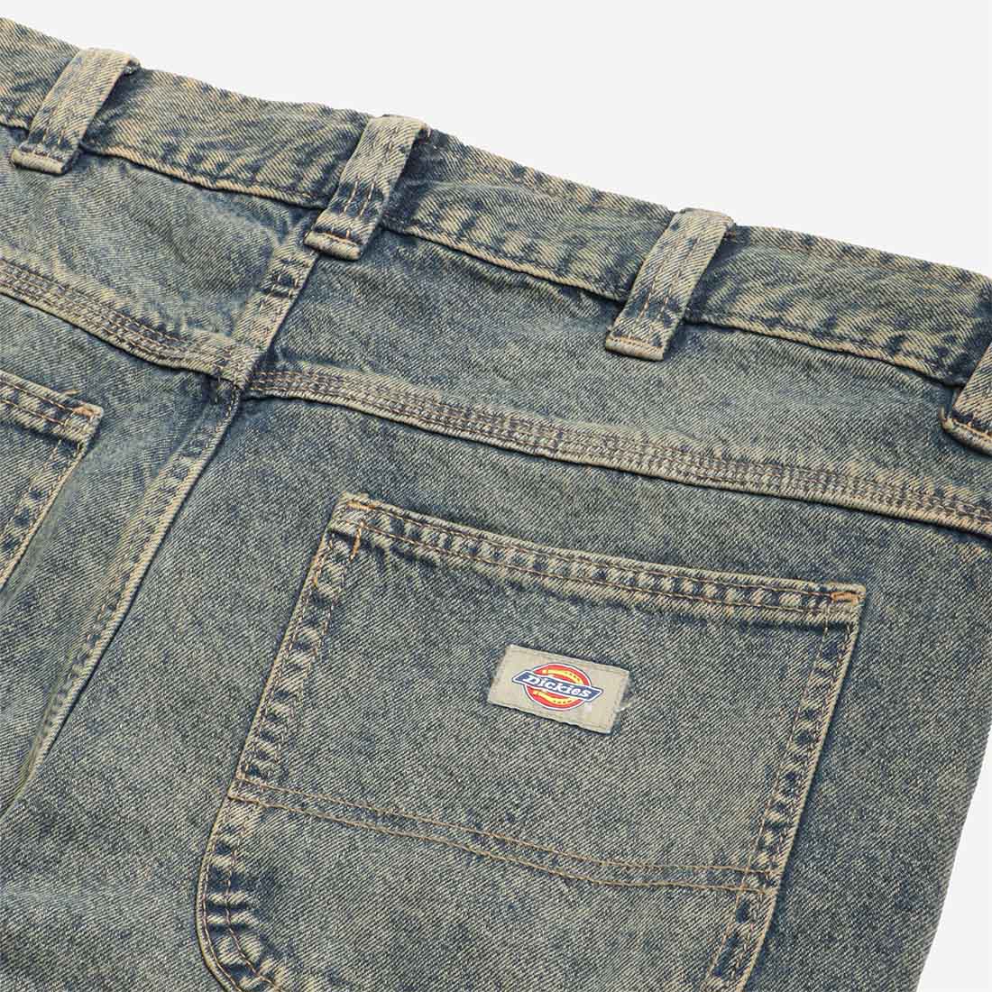 Le pantalon en denim Madison de Dickies en indigo délavé jaune allie style et utilité avec sa coupe ample et ample et sa poche latérale supplémentaire sur la jambe.