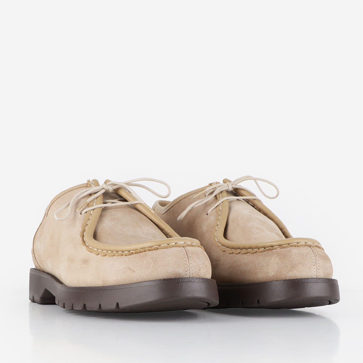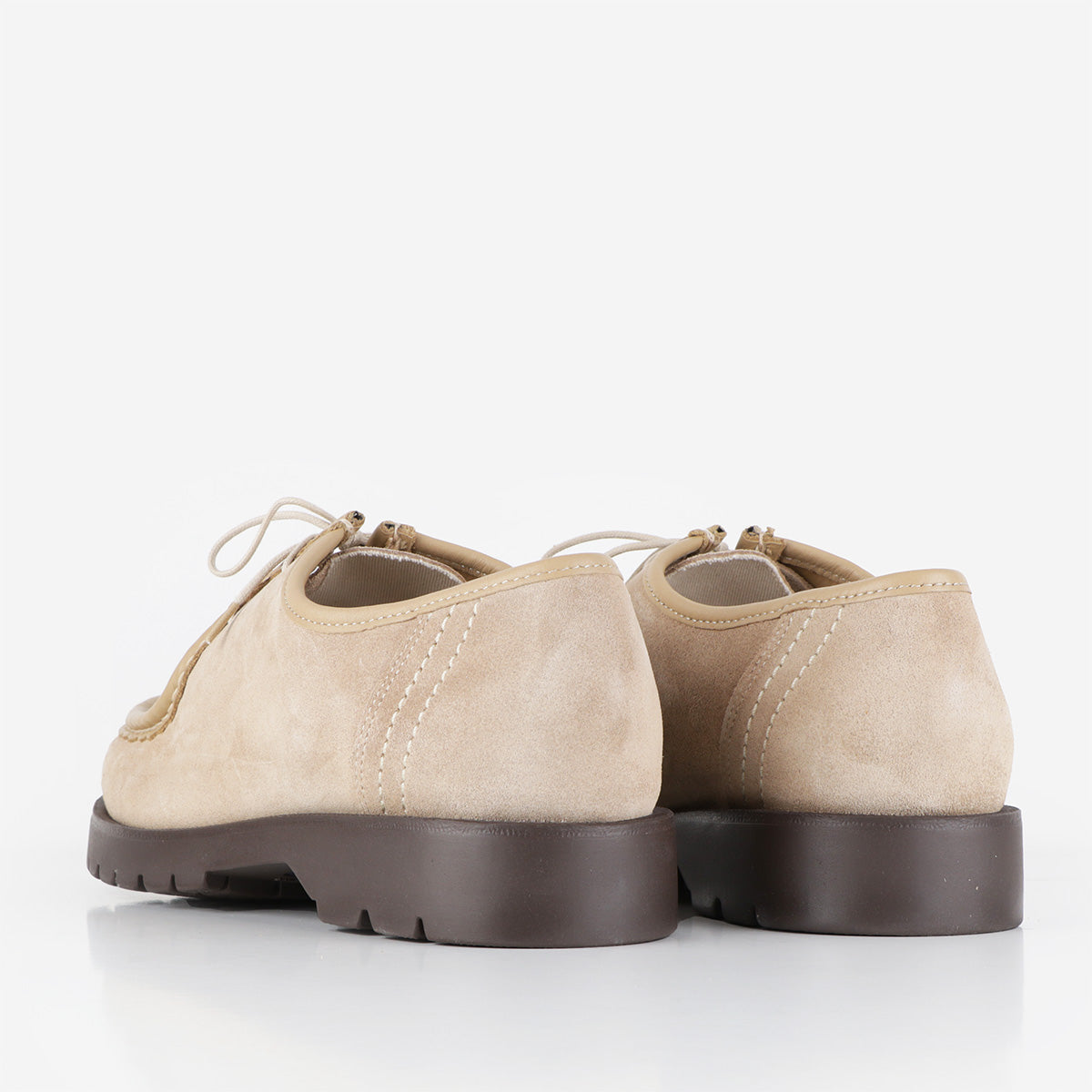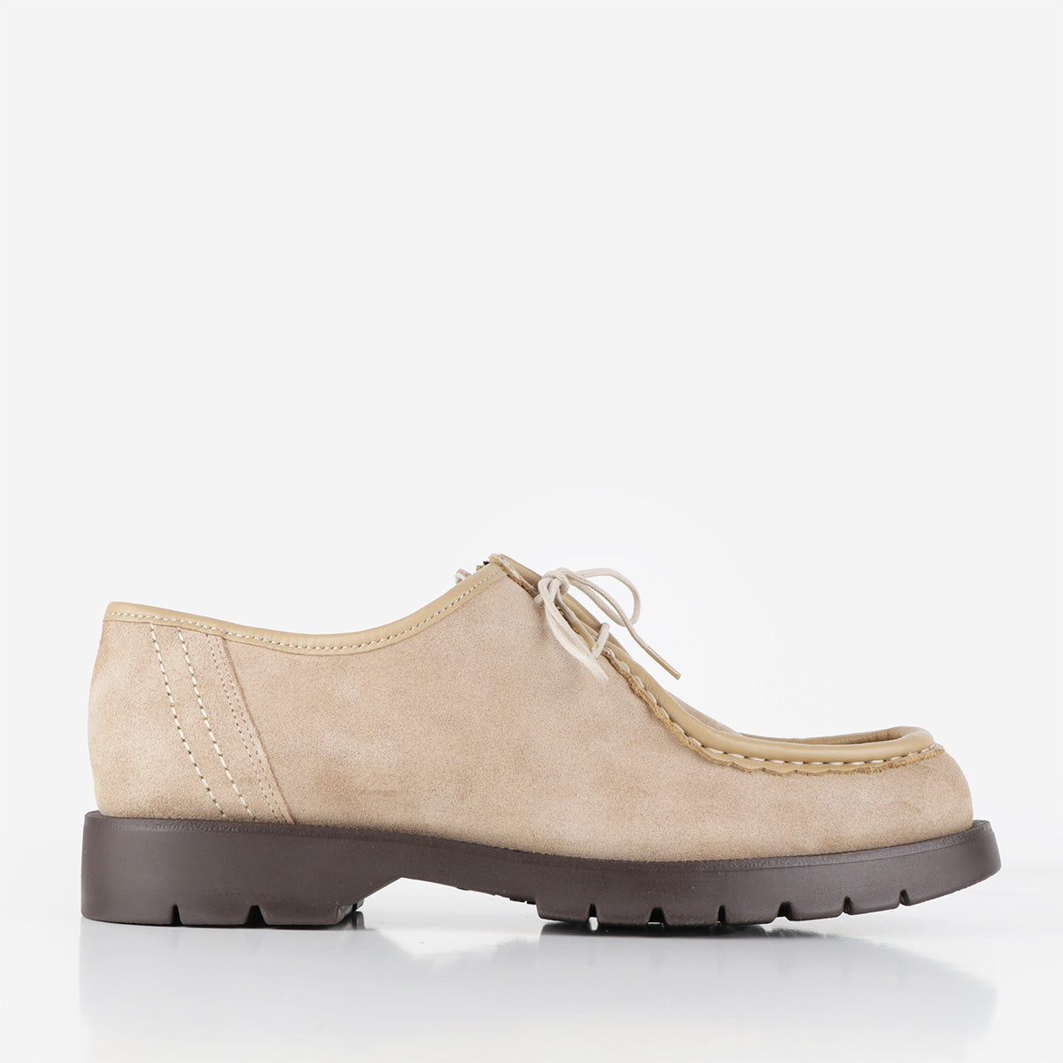 Les chaussures Kleman Padror V beiges sont confectionnées avec soin en daim luxueux et souple et en cuirs européens provenant de tanneries certifiées par le Leather Working Group. Ces chaussures emblématiques arborent un ourlet dentelé et des coutures fantaisie, ce qui en fait un modèle idéal pour une tenue formelle ou professionnelle.