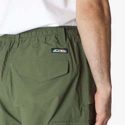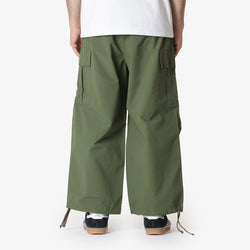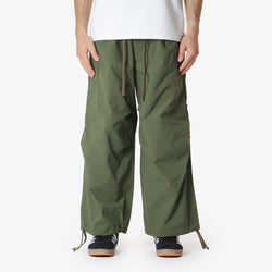 Le pantalon Manastash Manatrooper en olive est un pantalon cargo surdimensionné avec une élasticité naturelle, offrant la coupe la plus ample de leur gamme.