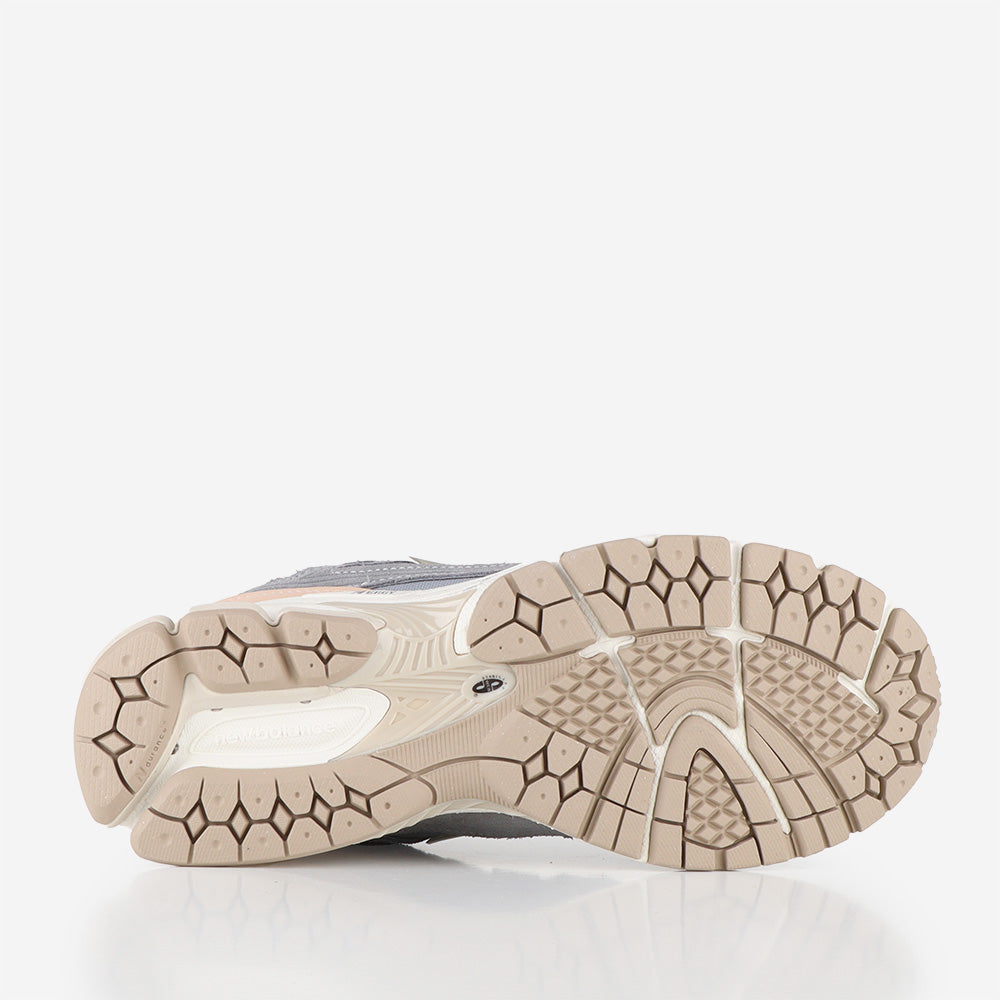 Une toile robuste à la finition gris clair revisite les empiècements en mesh typiques de la précédente 1906R et s'associe à des empiècements en daim assortis pour compléter la tige. Le contrefort en TPU a été revisité avec un cuir naturel beige pour un look et un toucher plus haut de gamme.