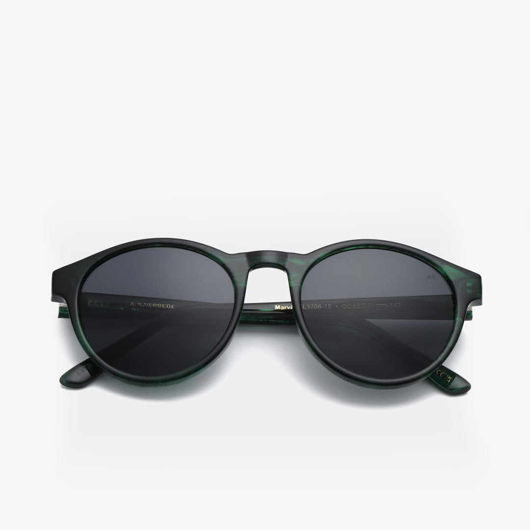 A. Kjaerbede Marvin Sunglasses in Green Marble Transparent are a classic pair of sunglasses made in a timeless design, accentuated by bold details. A unique accessory for all situations and a must-have for every man and woman.