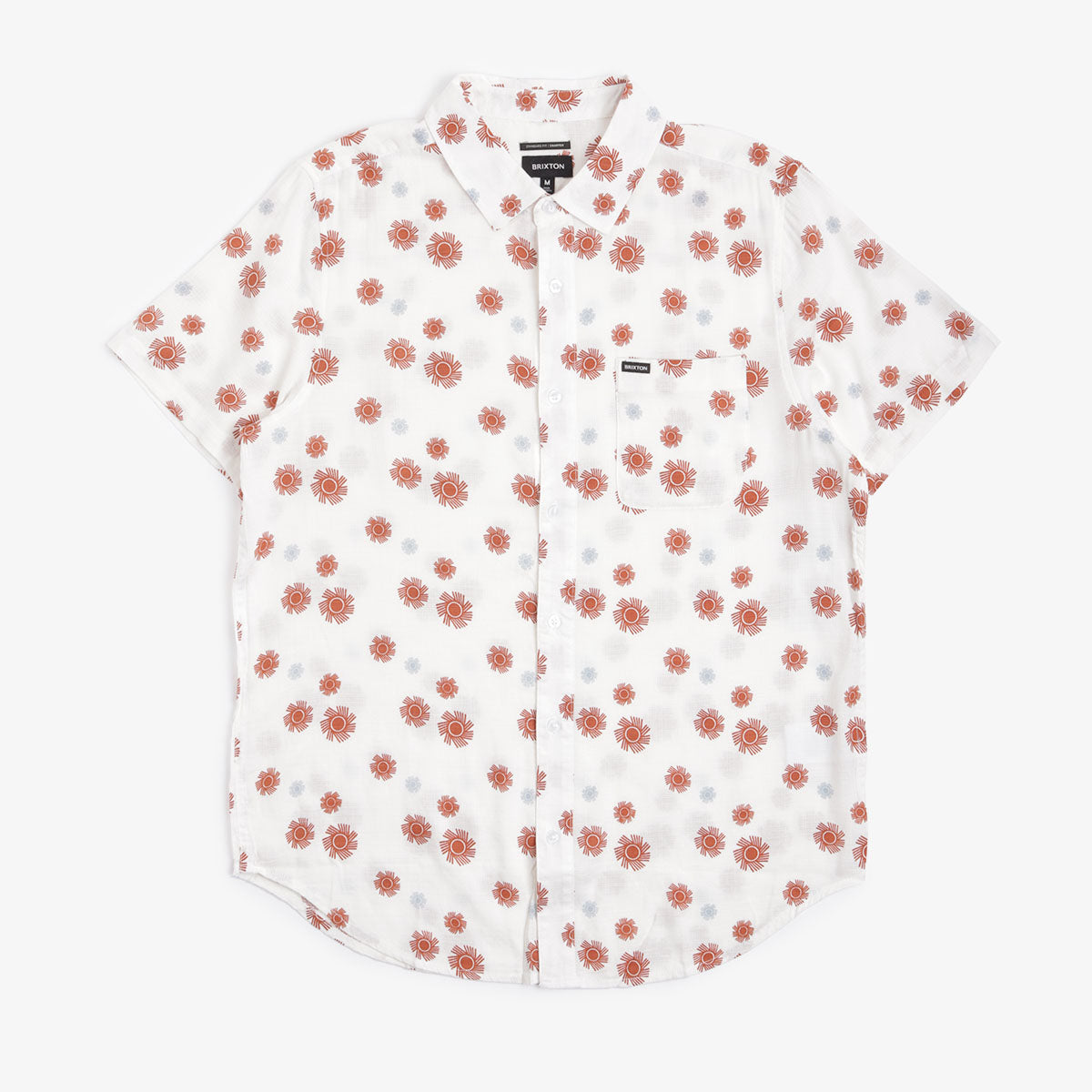 The classic button-up front and curved hem create a flattering silhouette, while the all-over Umbrella Scene print injects summer style into this signature Brixton design. Complete with a left chest pocket with a woven label, offering a handy spot for your sunglasses.