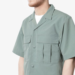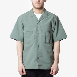 The shirt also includes two large pleated chest pockets with hidden snap closures to conveniently store your essentials, as well as a woven military label above the hem to finish.