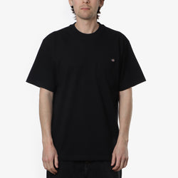 The Dickies Luray Pocket T-Shirt in Black is a timeless essential crafted from soft 100% cotton jersey. Featuring an authentic ribbed crewneck and a classic single chest pocket, this short sleeve tee is designed for lasting comfort and effortless style. The signature woven Dickies logo on the chest pocket completes the look.