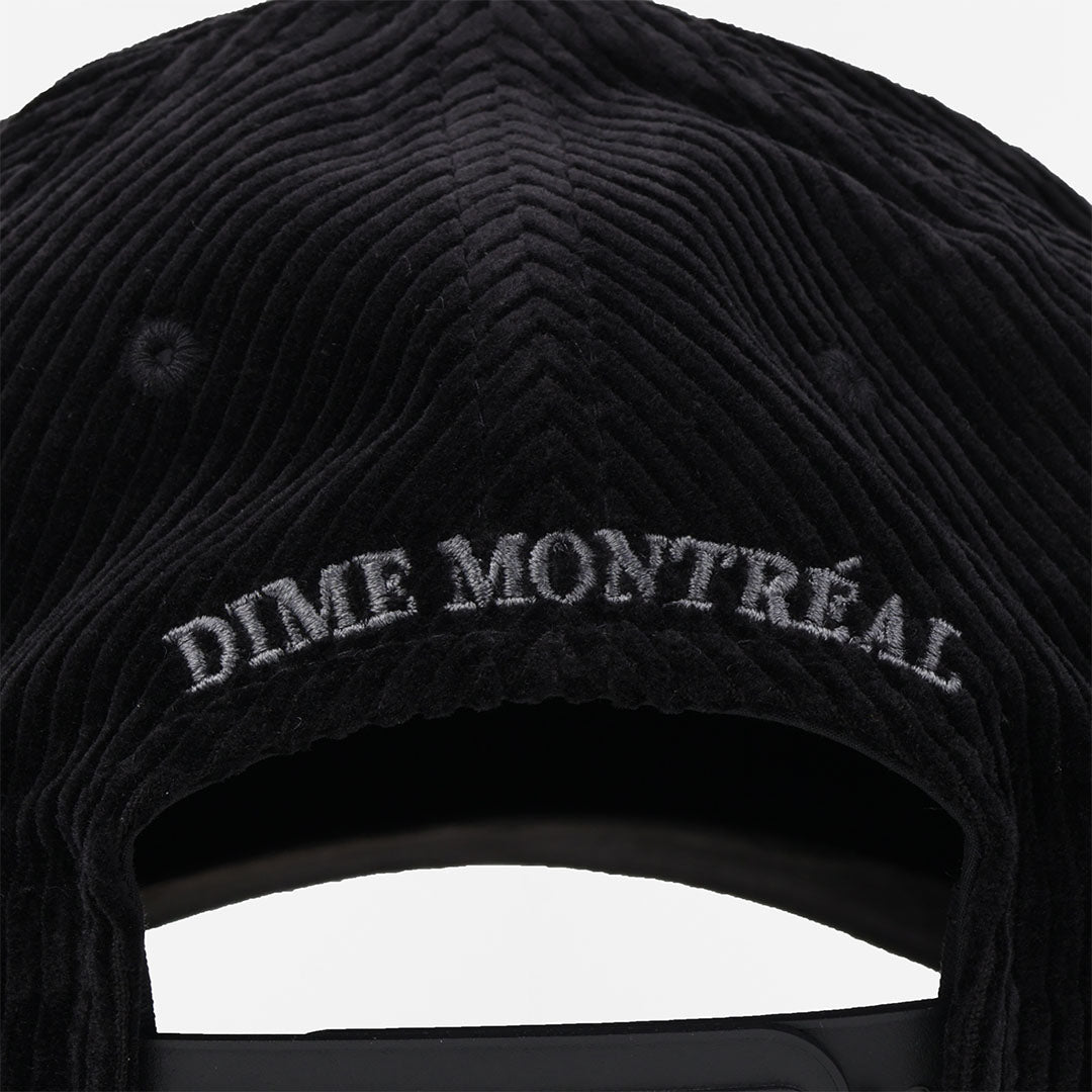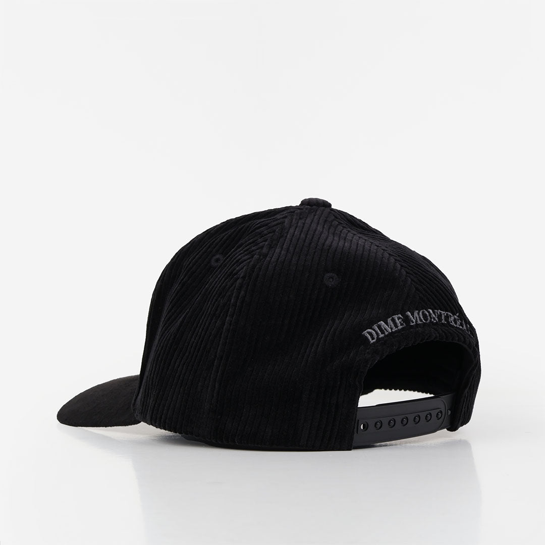 The Dime Cord Full Fit Cap in Black brings together textured fabric, everyday function, and clean design in one easy-to-wear piece. Made from 100% cotton, this structured snapback features soft corduroy panels and a suede-look brim for added contrast. Embroidered detailing on the front and back gives it that signature Dime finish without overdoing it.