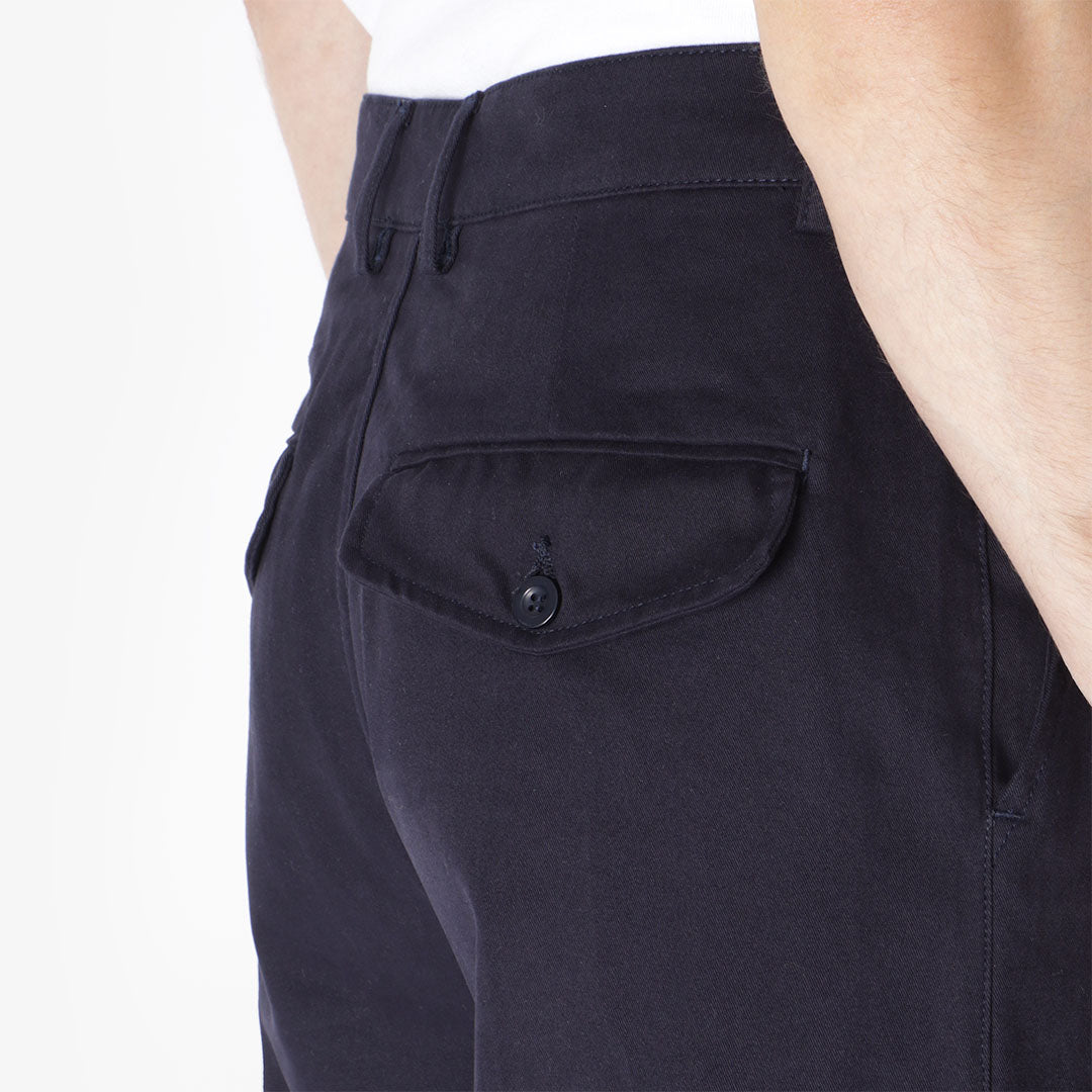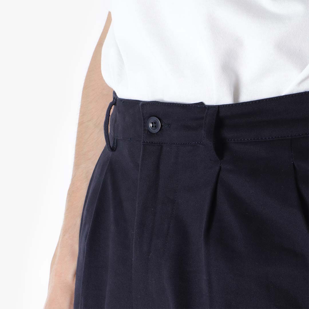 The Dispatches Foreman Double Pleat Pant in Navy delivers everyday comfort with a refined, workwear-inspired design. Cut from durable 100% cotton with a relaxed fit and clean lines, it features a double-pleated front for added structure and practical pocketing for daily use. Whether you're in the office, dressing up a casual outfit, or building a go-to wardrobe, the Foreman Pant offers dependable, smart-casual versatility.