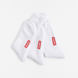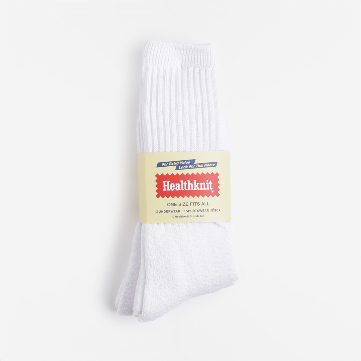 The Healthknit 3 Pack Socks in White are an essential wardrobe staple offering the perfect blend of softness and durability. Made with a cotton-rich blend, these mid-length crew socks feature a reinforced sole and heel support for ultimate comfort, while keeping the design minimal with branding on the sole.