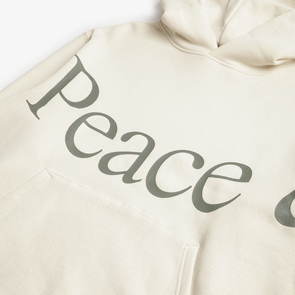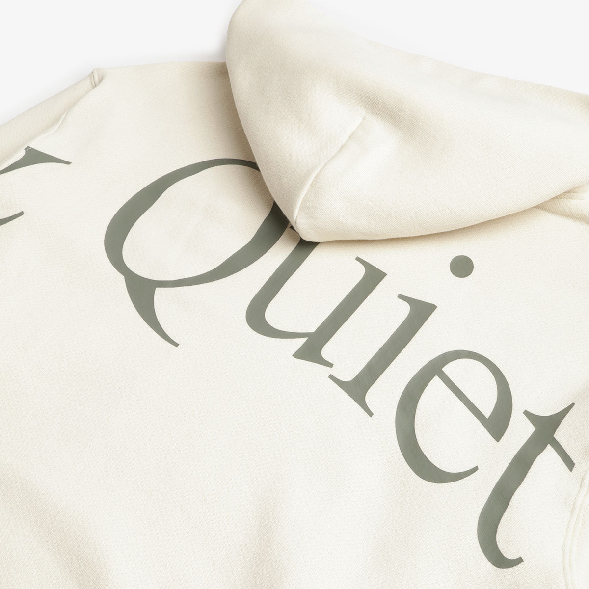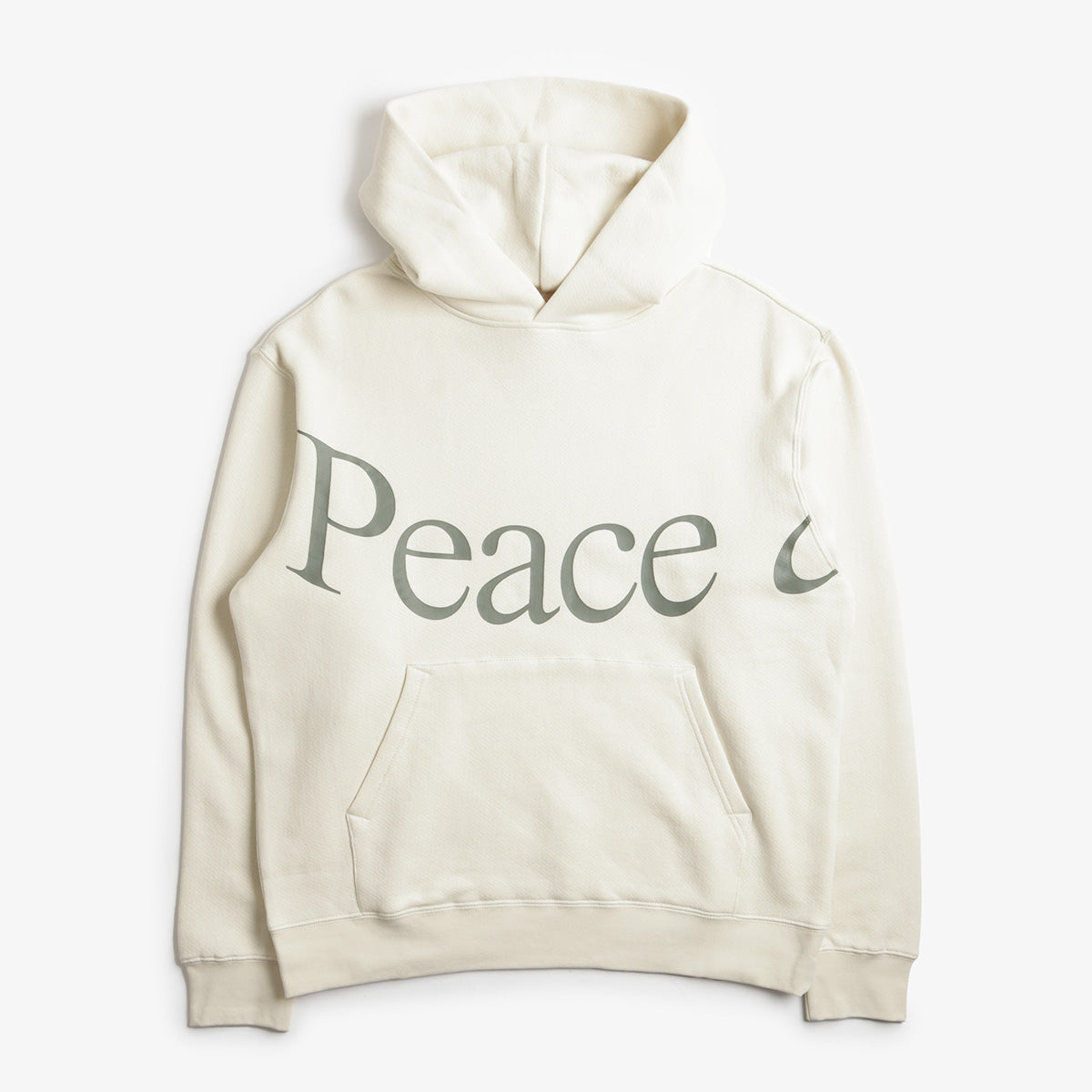 Rooted in mindfulness and minimal design, the Museum of Peace and Quiet Jumbo Wordmark Hoodie in Bone captures the brand’s mission to promote a clear, calm and purposeful lifestyle.