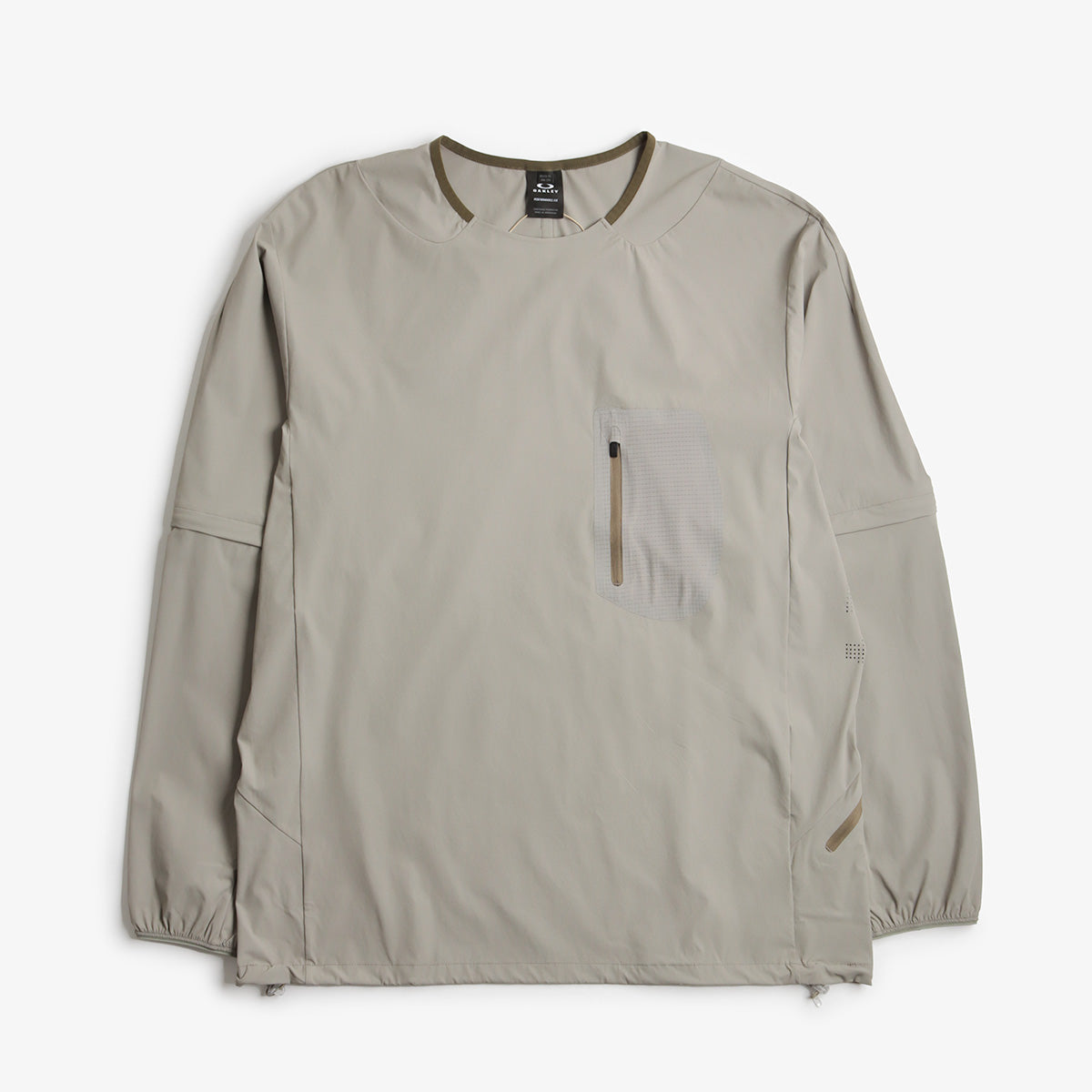 The Oakley Latitude Flight Convert Shell T-Shirt in Boulder Green is built for movement and adaptability. Made from water-repellent stretch nylon with zip-off sleeves, it easily converts from long to short sleeve for on-the-go versatility. Zipped pockets and laser-cut ventilation add function and comfort—ideal for changing weather and active days.