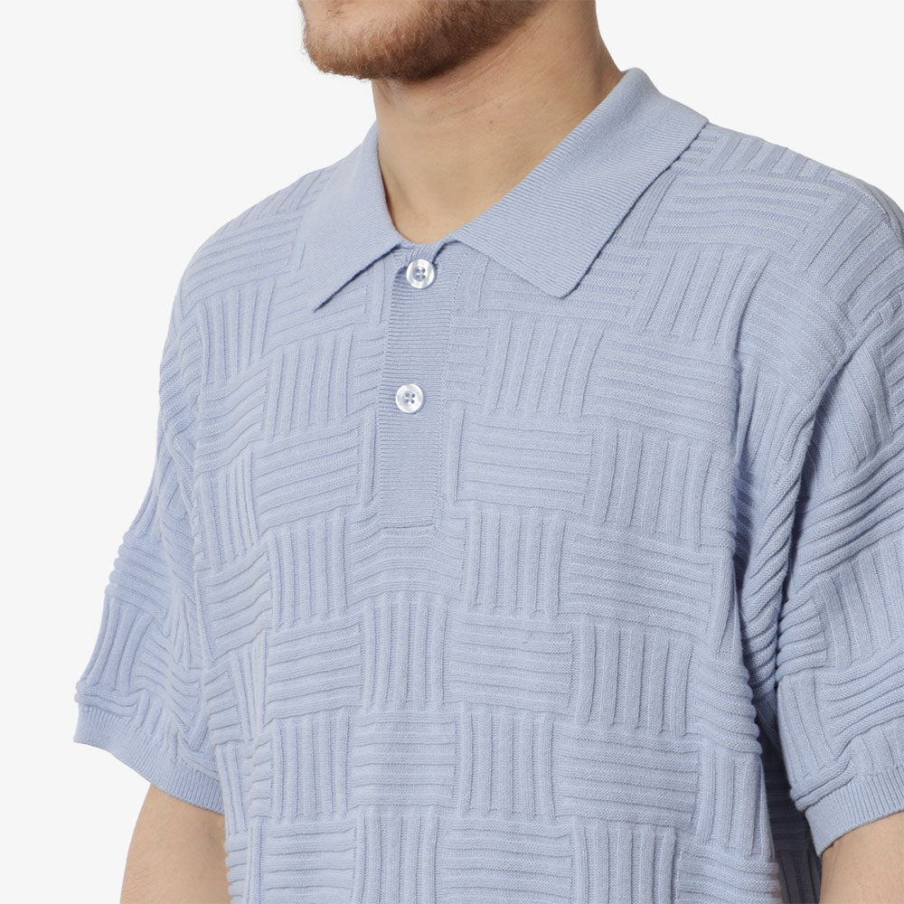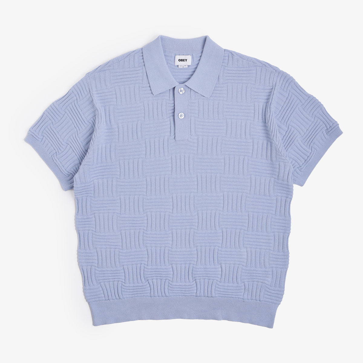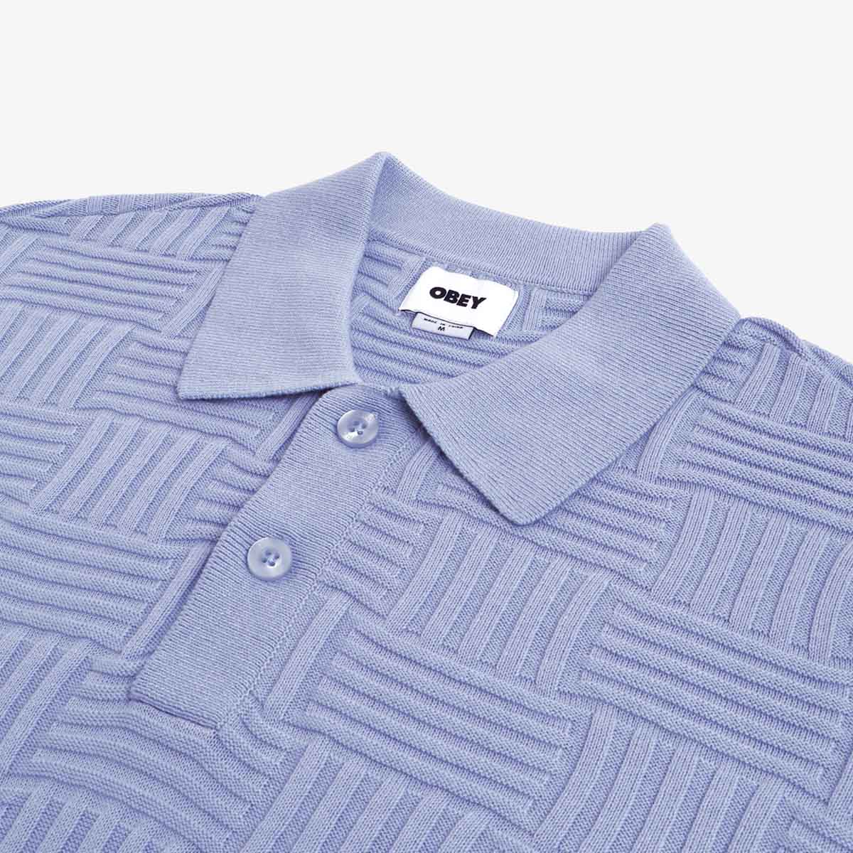 The OBEY Alfred Polo Sweater in Hydrangea is a textured polo short sleeve sweater that brings an element of 'Golf Core' to the OBEY range.