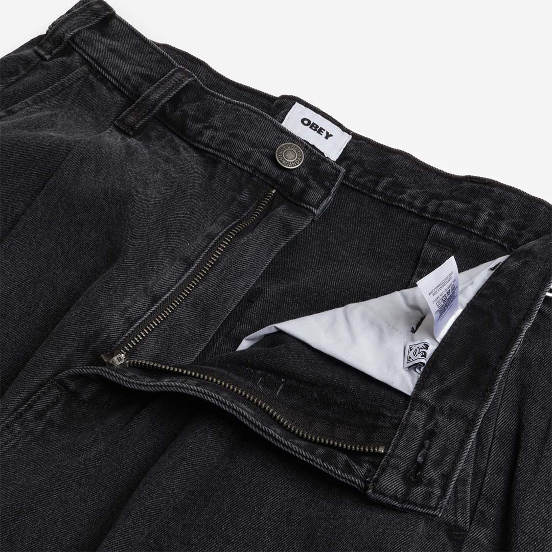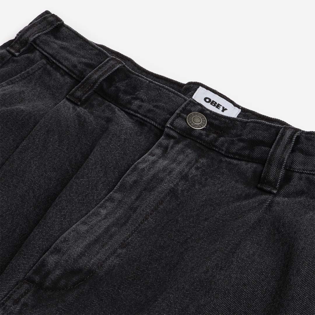 The OBEY Oliver Denim Pleated Pant in Faded Black is where classic tailoring meets relaxed streetwear. Designed for comfort and built to last, these pleated denim trousers are crafted from a durable 9 oz cotton denim.