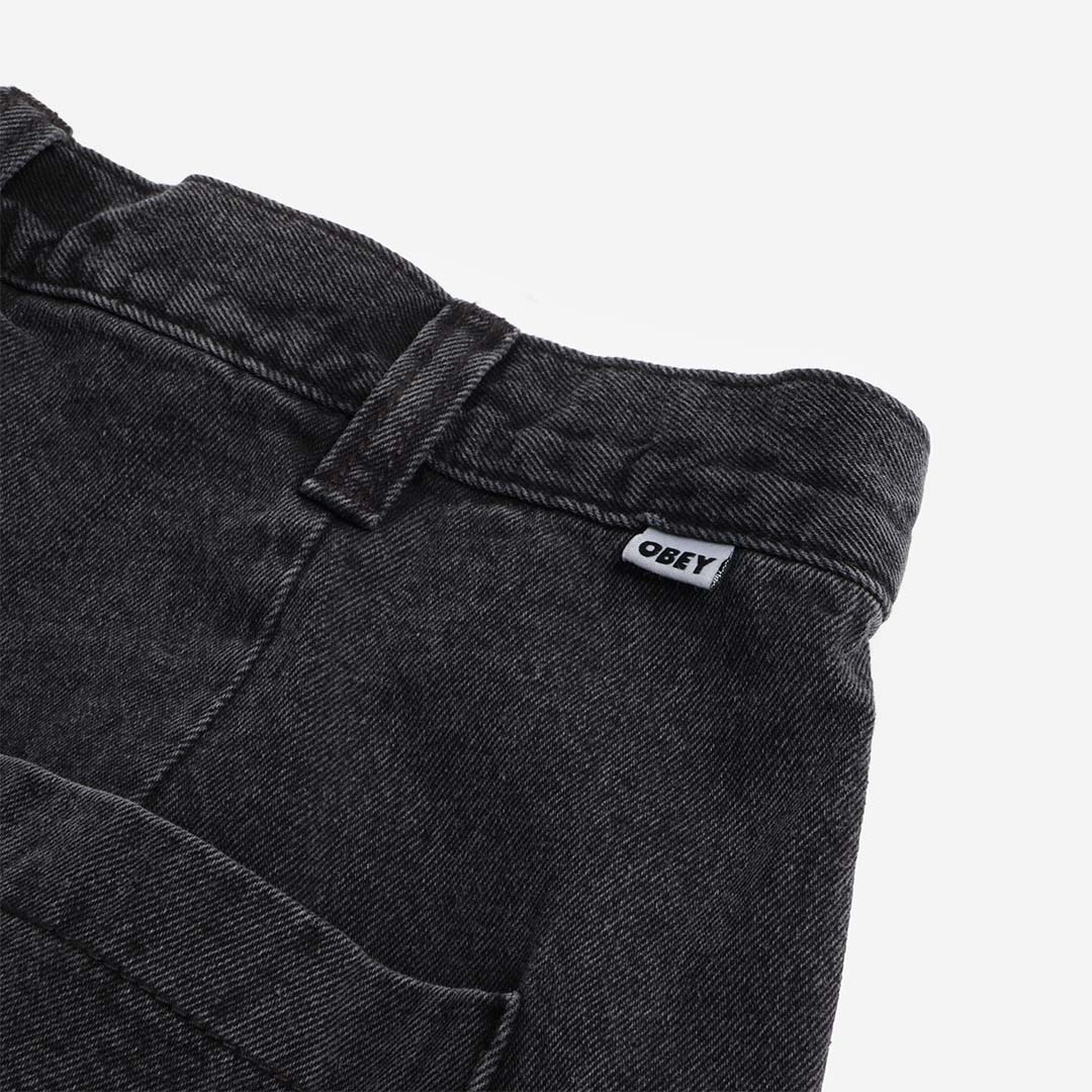 Designed with a baggy fit and straight leg, they offer an easy, relaxed silhouette with plenty of room to move. Practical features like two slant front pockets, back patch pockets, and a metal shank button with zip fly deliver classic workwear utility. Finished with a faded black wash and a discreet OBEY logo label.
