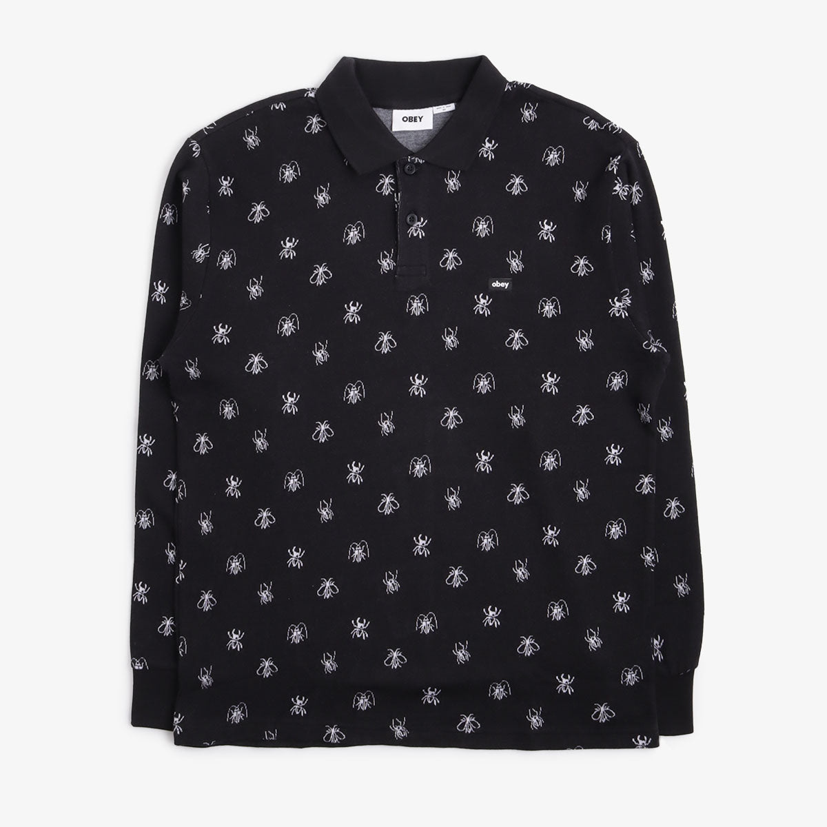 Featuring a fold down collar secured with buttons and ribbed cuffs, this classic polo is detailed with a signature woven OBEY label on the left chest.