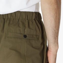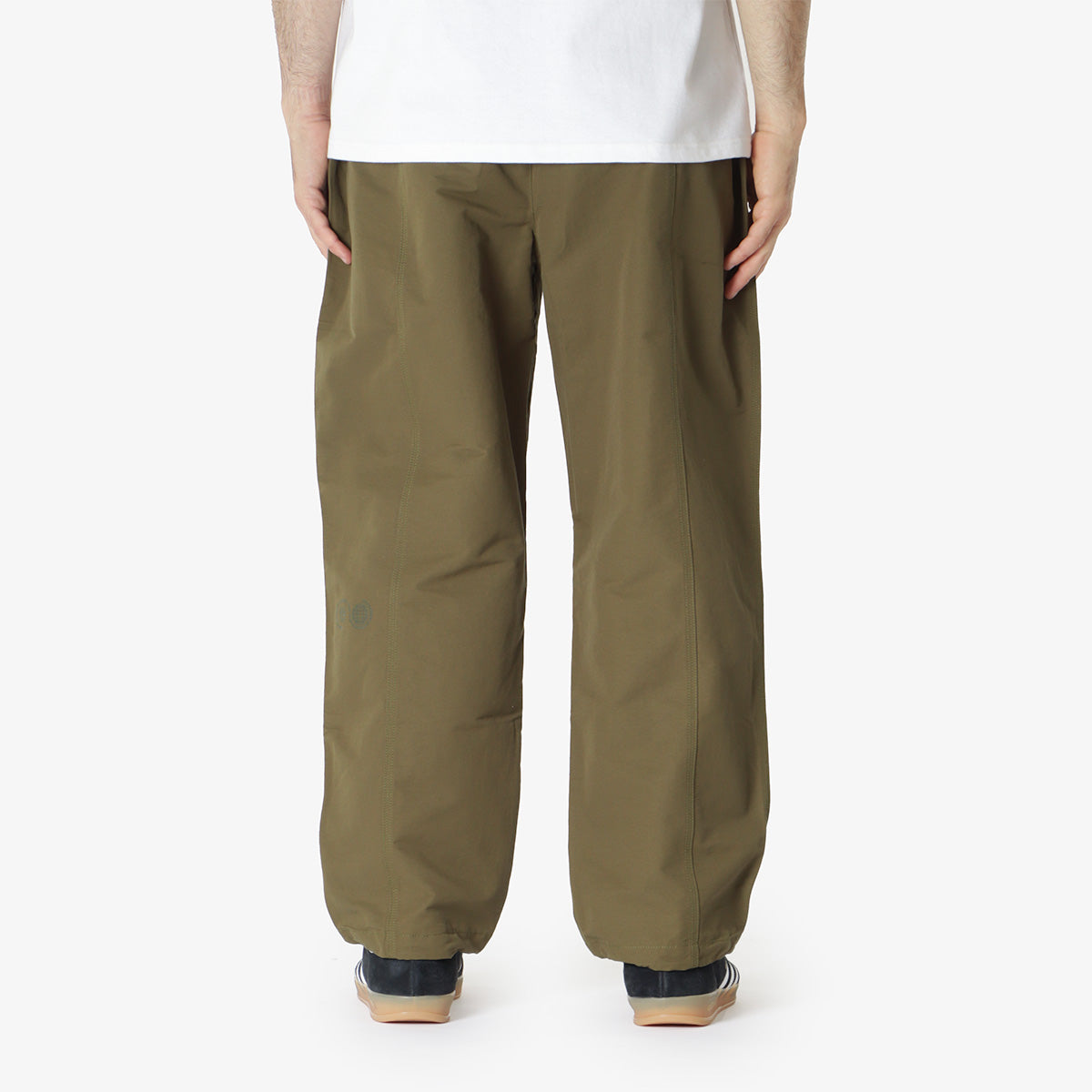 The Alpine Nylon Pant in Khaki from Purple Mountain Observatory is a comfortable and versatile piece. Crafted from a durable blend of cotton and nylon, these pants offer a loose fit with an adjustable elastic waistband and integrated webbed belt for a customisable fit. Finished with two front pockets, two back pockets with popper closures and printed branding on the back left leg.
