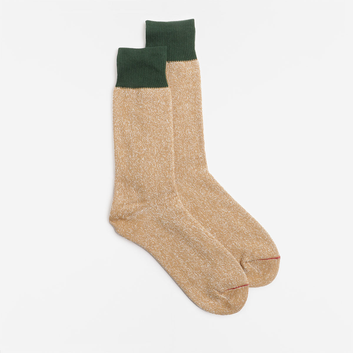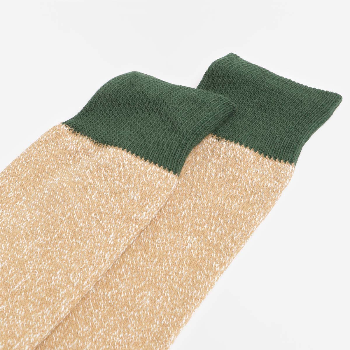 • main Rototo Double Face Crew Socks, Dark Green Beige, Detail Shot 1