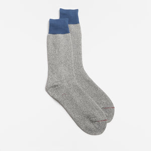 • thumbnail Rototo Double Face Crew Socks, Dark Green Beige, Detail Shot 1