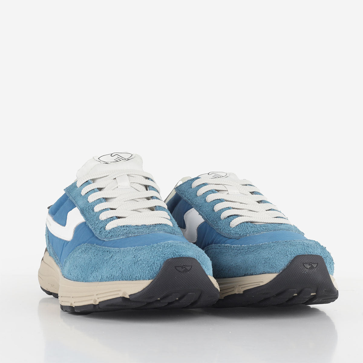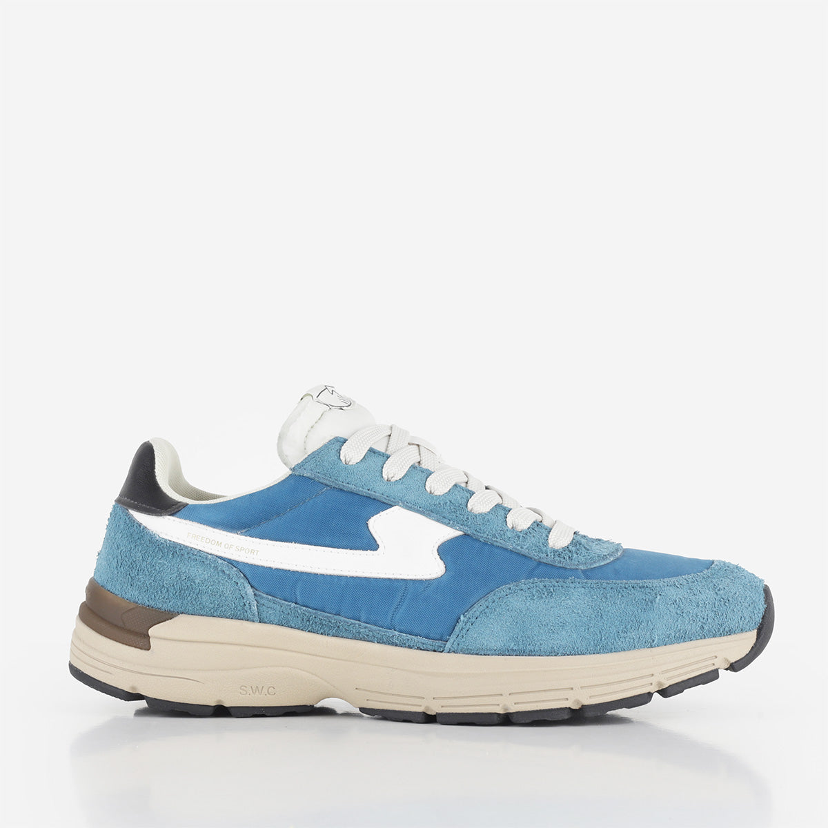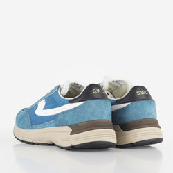 The Osier S-Strike in Sea Blue is a modern take on the classic 70s running shoe. Featuring blue suede uppers paired with a blue nylon forepart and side panels, this sneaker blends vintage style with a contemporary twist. The white leather S-Strike identifier and black heel tab provide a pop of contrast to the sleek design.